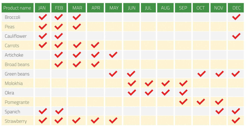 Our Products IQF vegetables sweet potato Green beans broccoli Cauliflower onions sweet corn pumpkins pepper artichoke spanish Aloe vera Molokhia IQF fruits strawberries Mango Apricot Gauava figs pomegranate Lemon calendar